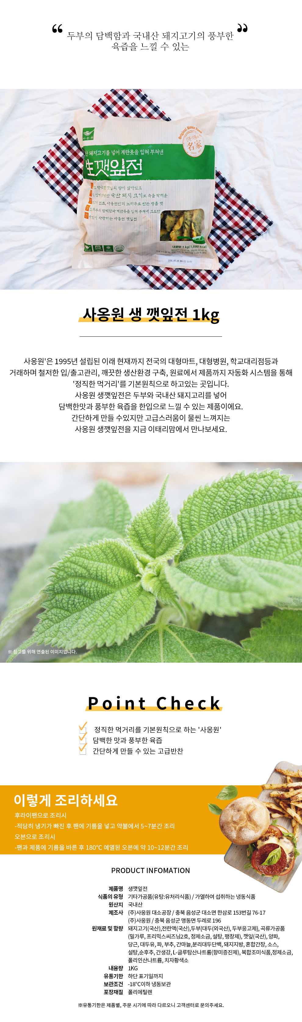 사옹원 생 깻잎전 1kg