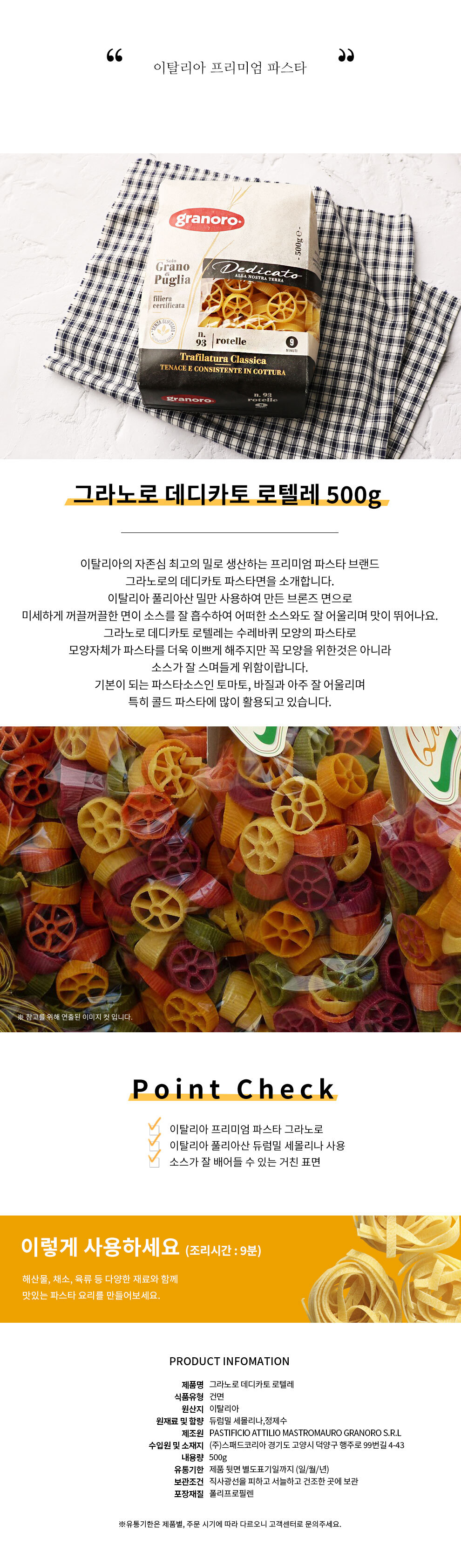 • 그라노로 듀럼밀 파스타면 데디카토 로텔레 500g