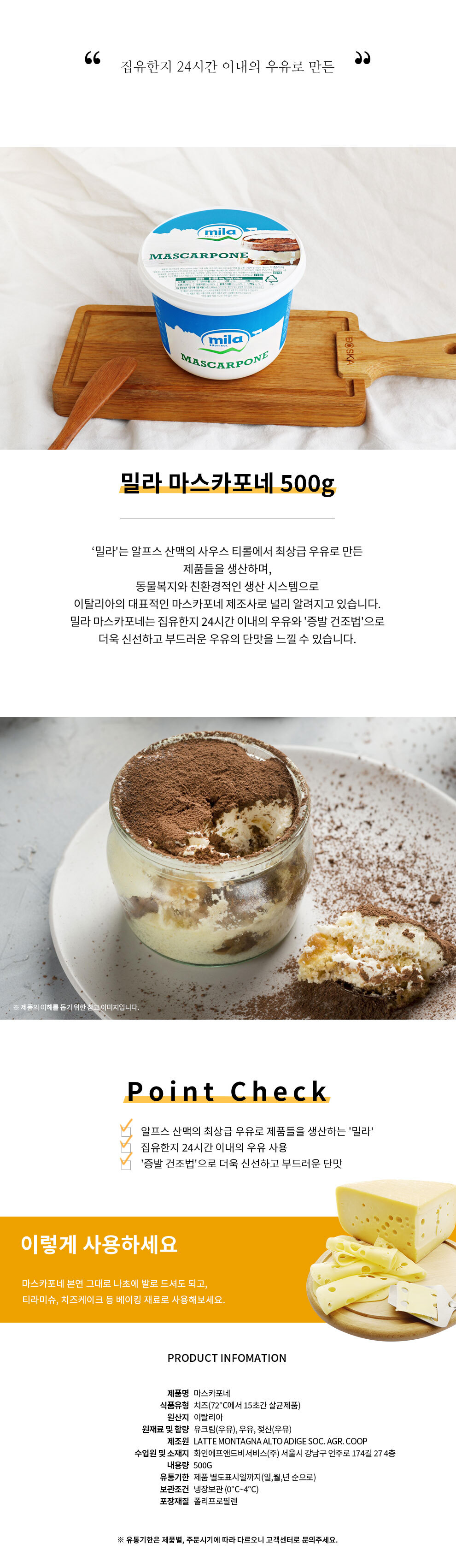 • 밀라 마스카포네 치즈 500g 티라미수