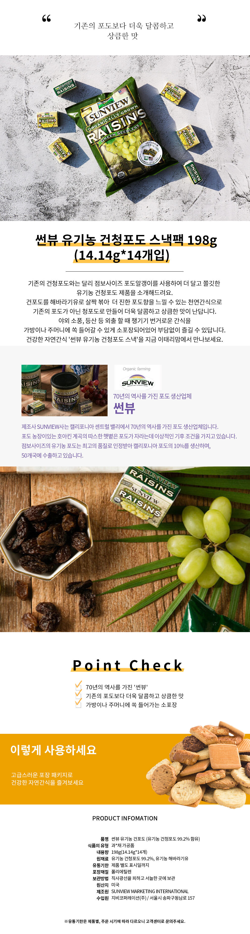 • 썬뷰 유기농 건청포도 스낵팩 198g(14.14gx14개입)